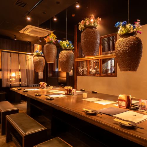 和情緒溢れる個室が充実。個室・半個室は2名様~最大50名様までご用意。大人気の完全個室はVIP感が味わえる空間です♪寛ぎの時間をお過ごし下さい☆雰囲気の良い空間は、ついつい長居しちゃいそう!!ゆったりと寛いで頂けます♪